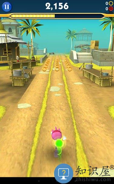 2.沿袭了经典的索尼克造型,一路飞奔,收集金环,躲避障碍等。