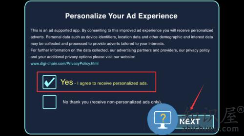 1、勾选同意个性化广告选项,点击下一步按钮。
