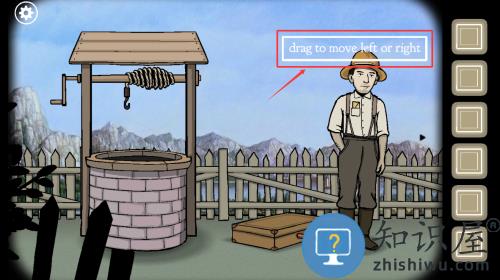 1、拖动角色左右移动,探索场景与物品互动。