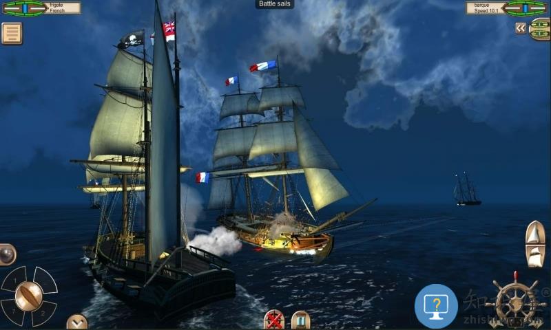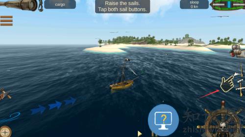 1、同时点击两个船帆按钮,升起船帆开始航行。