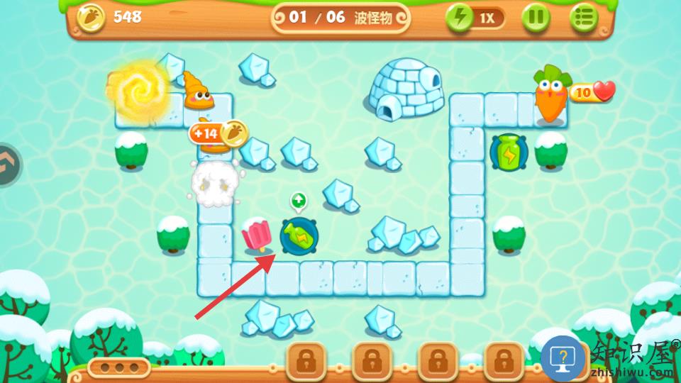 1、通过在地图路线两侧建造炮塔来阻止怪物靠近萝卜。