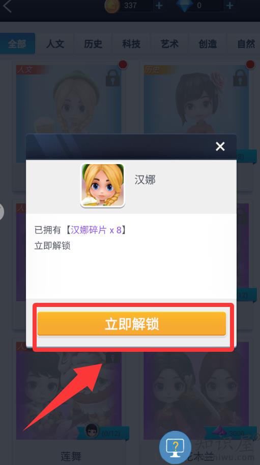 3、我们已经拥有汉娜碎片8个,点击解锁角色。