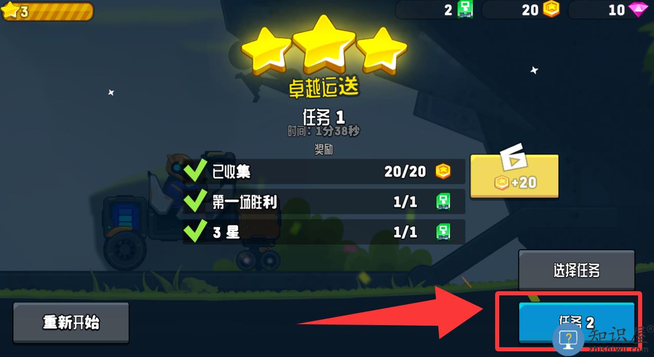 2、恭喜你完成任务了,点击红色框框里的任务2并继续。