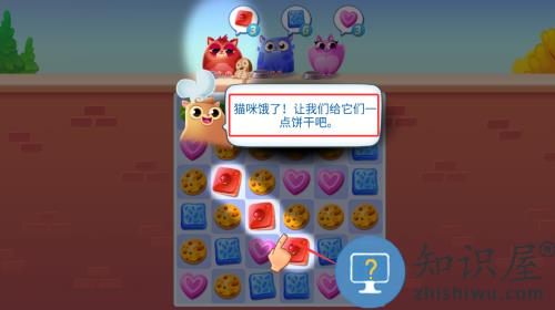 2、匹配三个相同饼干,喂饱饥饿的猫咪。