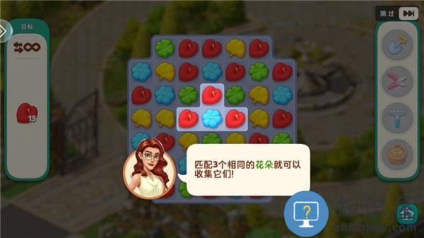 1、通过三消玩法推进剧情发展,匹配水果和花朵解锁新区域,改造陈旧豪宅。