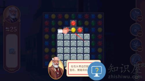 3、在石头旁匹配相同宝石,击碎石头完成目标。