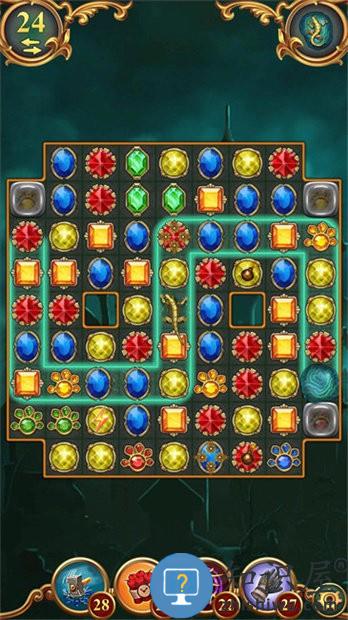 深邃神秘的主色调,精美的故事背景和动画效果,绚丽的宝石。