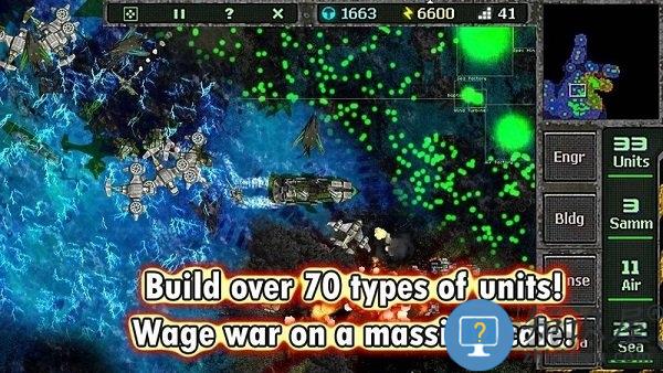 玩家可以指挥上千支作战部队进行战略一体战。使用炮塔、地对空导弹发射器、鱼雷发射器和远程大炮为基地提供坚实防护。多种模式提供给玩家,玩法多样,玩家可以体验一把战场带给人的胆战心惊!