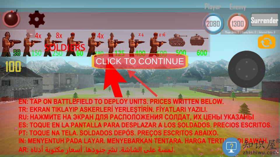 1、点击continue部署不同阵型率领士兵冲锋陷阵。