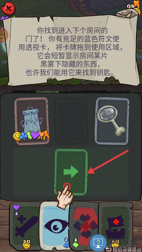 房间隐藏不同的物品,可以强化你的英雄,但当然它也可以非常伤害英雄。