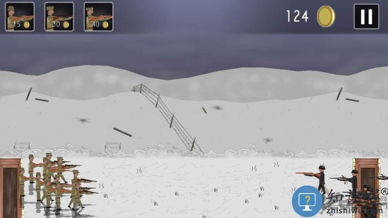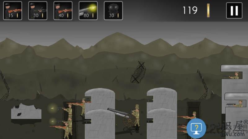 1、玩家需利用金币招募不同兵种并部署在战壕中防守。
