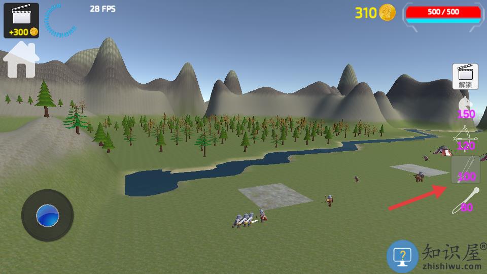 1、拖动摇杆观察敌情配置针对性兵种出战。