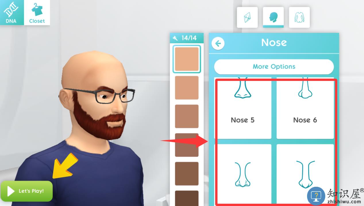 2、点击鼻子进入有好多现状的鼻型选择。