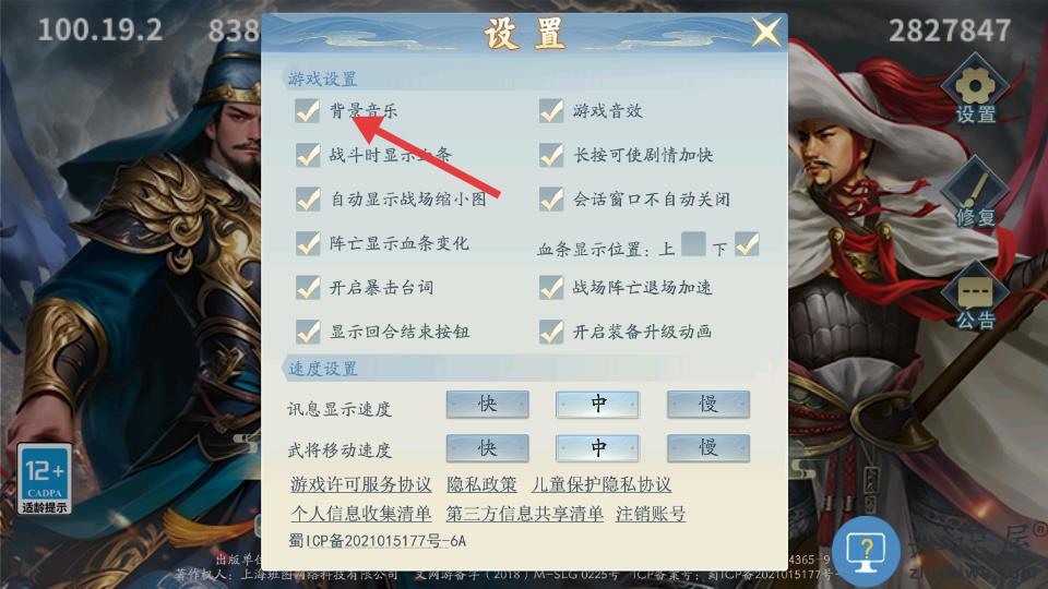 2、在弹出的设置界面把背景音乐的勾去掉。