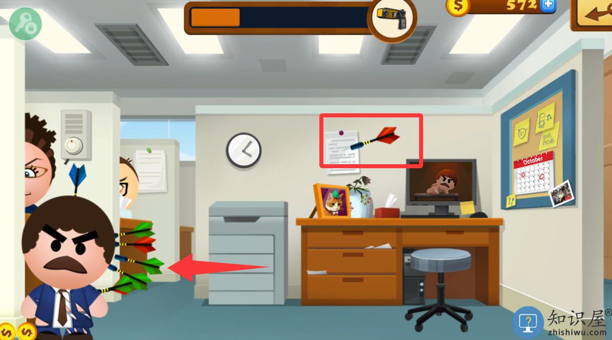 4、在游戏中,你可以向他扔各种东西,比如铅笔、订书机、咖啡吧、甚至是鸡蛋之类的。