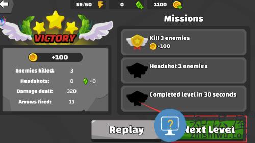 3、点击下一关按钮,完成三杀任务进入新关卡。