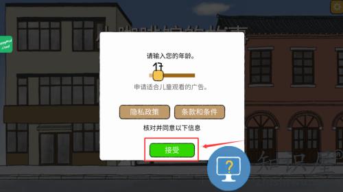 2、在年龄验证弹窗中,调整好您的年龄后,请务必按照红色方框和箭头的指示,点击最下方绿色的接受按钮,以同意相关条款。