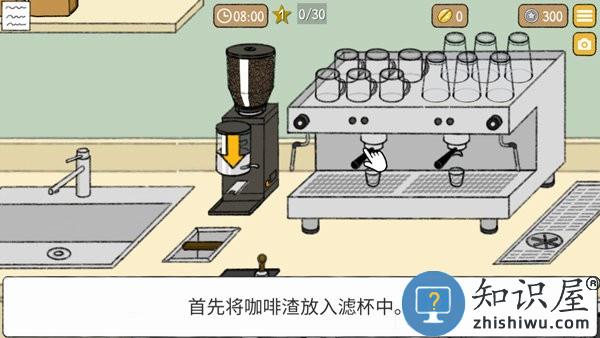 4、游戏真实模拟了咖啡制作的全部过程,首先将咖啡粉放入滤杯中;