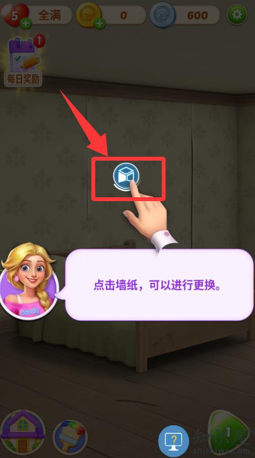 3、点击红色框框里的墙纸进行更换。