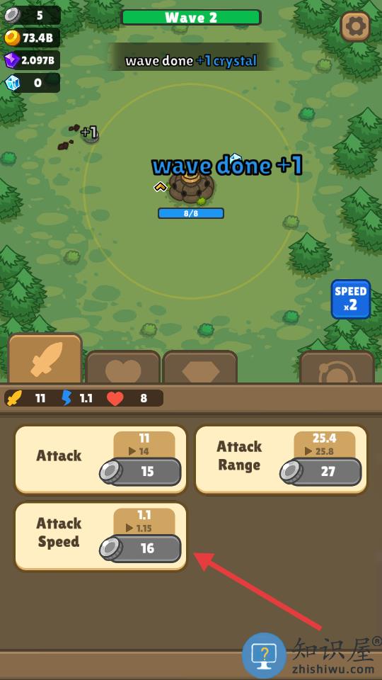 3、升级下方的炮塔属性,尤其是攻击速度。