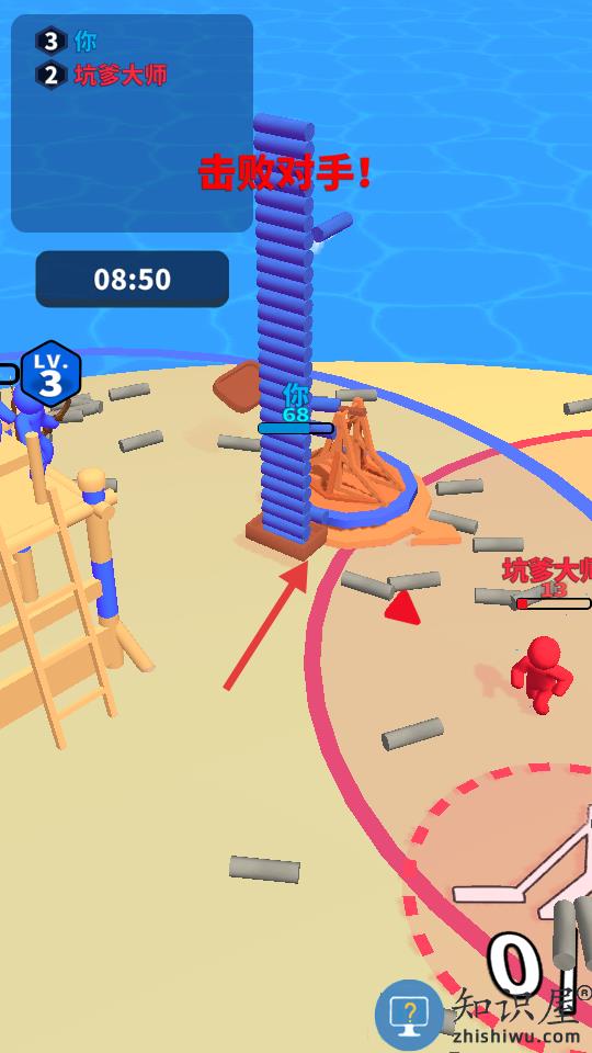 1、玩家需要拾取木头建造防御塔来阻挡敌人侵占地盘。