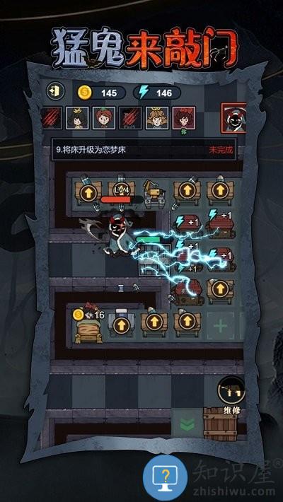 1、通过入睡积累资源升级房门防御设施。