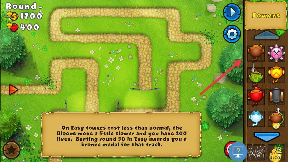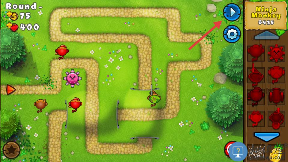 1、点击右侧动物拖曳到地图上防御气球进攻。