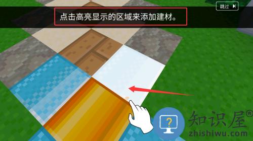 1、点击白色高亮方块区域,学习添加建材的基本操作。