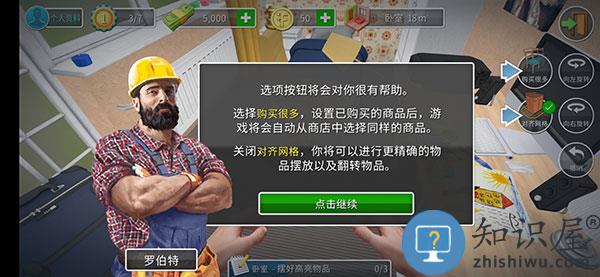 9、选项按钮将会对你很有帮助。选择购买很多,设置已购买的商品后,游戏将会自动从商店中选择同样的商品。关闭对齐网格,你将可以进行更精确的物品摆放以及翻转物品。