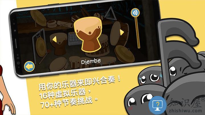 在这场冒险旅途中,你将学习到阅读乐谱的基本技能,通过演奏打击乐器来增加你的节奏感。打开你的设备,让我们马上开始吧!