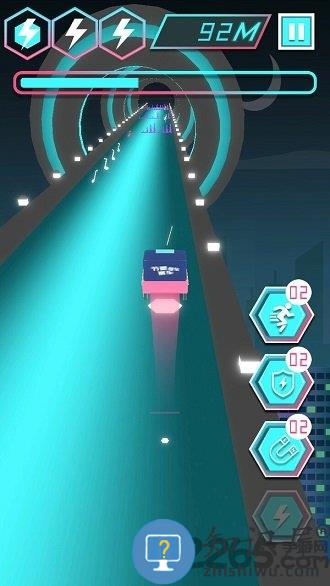 1、玩家操控赛车在城市上空赛道跟随音乐飞驰。