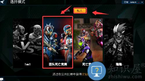 2、选择私人然后点击团队死亡竞赛并进入。