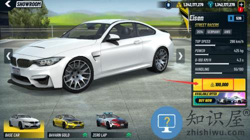 1、支付10万货币购买这辆白色宝马M4跑车。