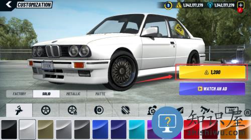 3、支付1200金币或看广告,为车辆选择金属漆涂装。