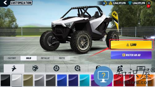 3、支付1200金币或看广告,为车辆选择金属漆涂装。