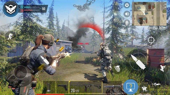 1、在各种各样的地形中开始射击作战,你可以和敌方部队的玩家开始射击对抗。