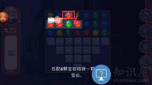 3、把红宝石往下移进行4消会获得一颗炸弹道具。