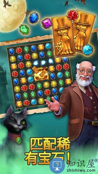 玩家进入这款游戏后,需要移动不同的宝石是连成三个一排进行消除;引人入胜的地方在游戏的情节设置,玩家解开老钟表匠的谜语,解除施加在小镇上的咒语