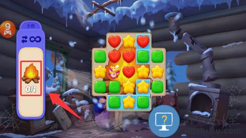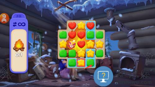 1、进入游戏移动黄色小星星移动过去继续3消。