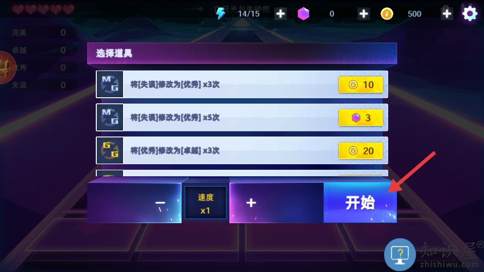 1、随着音乐节奏准确点击下落的音符方块,完成基本操作。