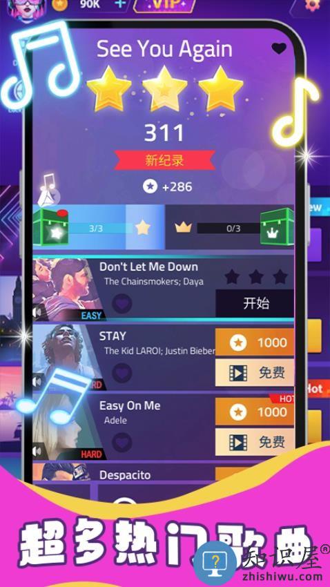 1、经典模式需完整演奏整首曲目,失误三次即终止挑战。