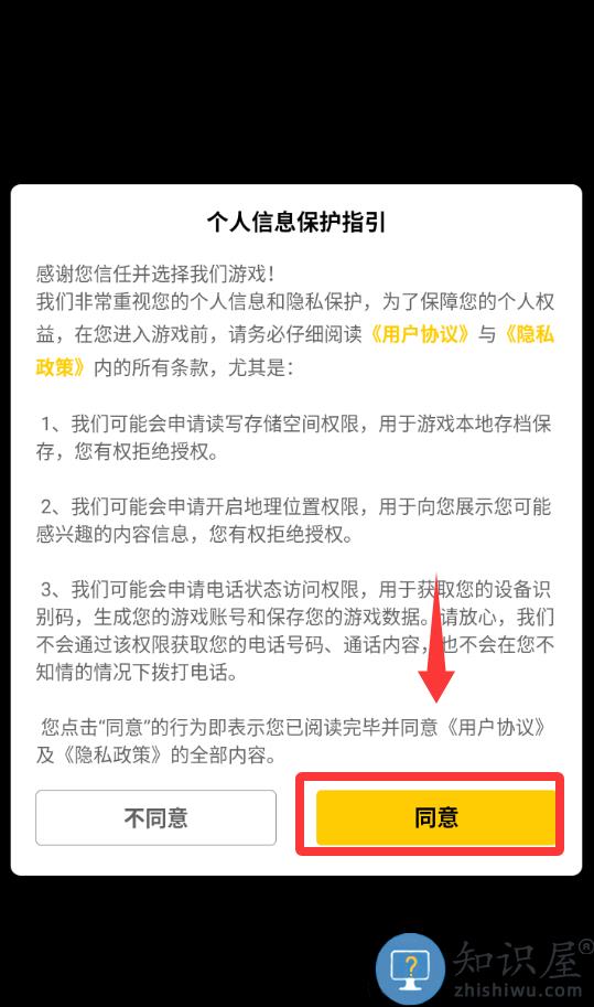 1、点击个人信息保护指引里的同意并继续。