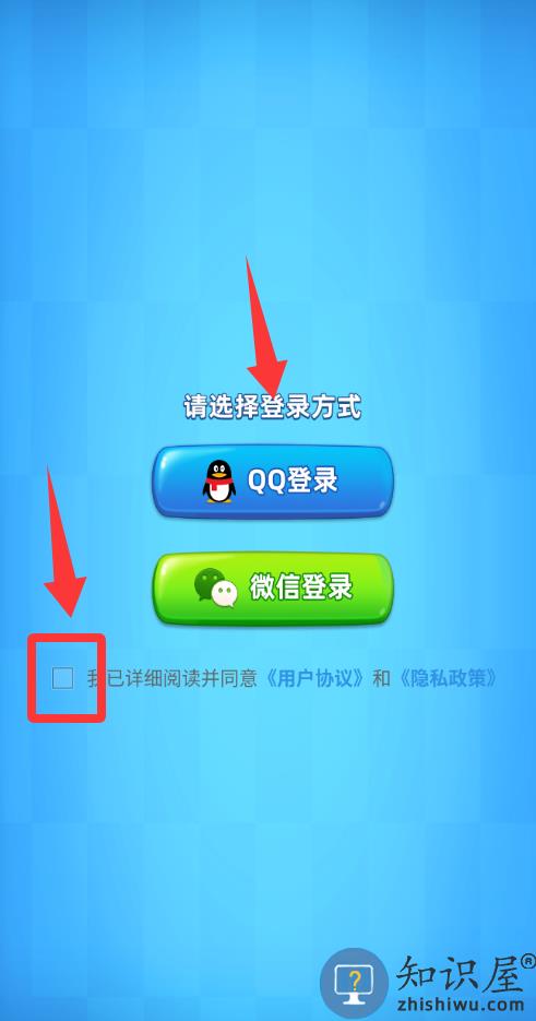 2、点击红色框框里打√然后点击QQ登录。