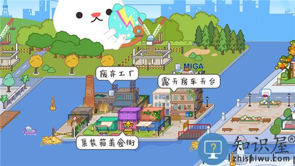小镇地图从左到右分别对应的是:废弃工厂、露天房车天台、集装箱美食街;