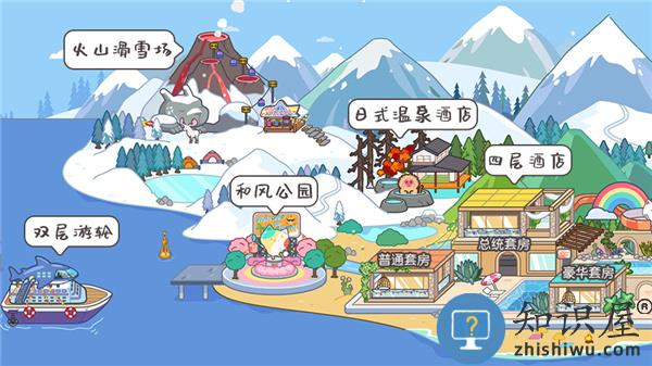 火山滑雪场、日式温泉酒店、四层酒店、双层游轮、和风公园;