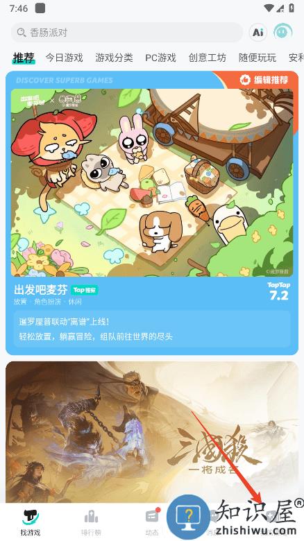 1、在本页面下载安装打开taptap官方软件,点击右上角的头像。