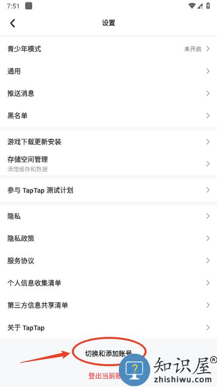 前面步骤跟上面一样,但是在设置界面,点击最下方的切换和添加账号;