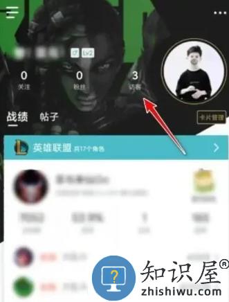 3、在个人主页,点击头像后面的箭头,进入战绩互动中心,点击头像左侧的【访客】进入查看自己的访客记录了。
