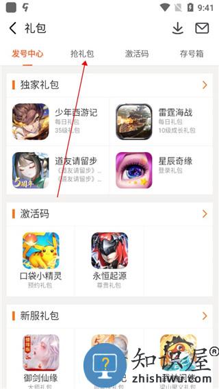 5、在抢礼包界面中找到自己所玩的游戏并点击进入领取。