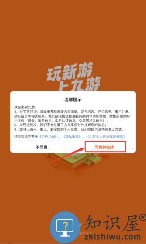 1、阅读隐私政策后,点击红框标注的同意并继续按钮。